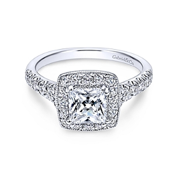 Princess with Halo and Graduated Diamond Shoulders Alloy Sample Ring Mount by Gabriel & Co. - ER10907ALZJJ