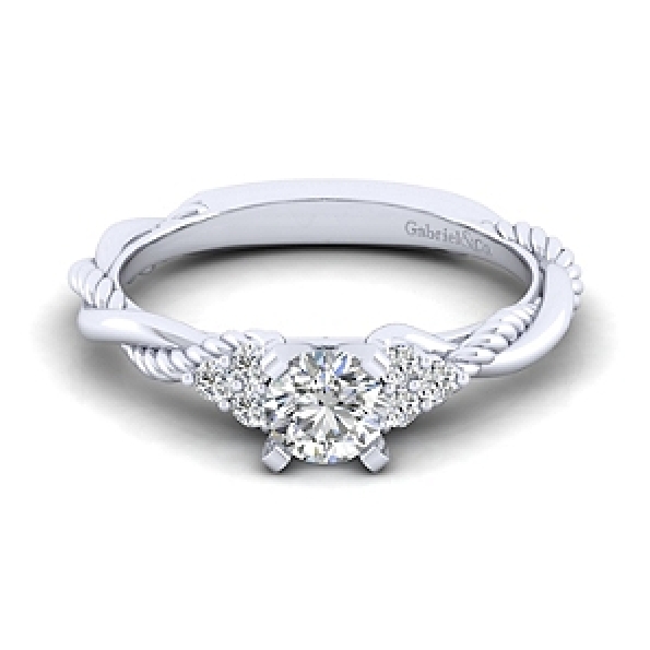 Solitaire with 3 Stone Cluster on Shoulders and Rope Twist Band Sample Ring Mount by Gabriel & Co. - ER8817ALZJJ
