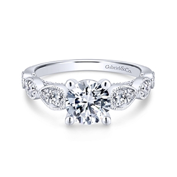 Solitaire with Pear Shaped Accents Diamond Shoulders Alloy Sample Ring Mount by Gabriel & Co. - ER12803R4ALZJJ