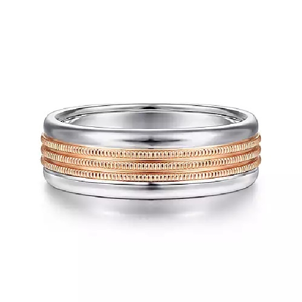 7mm Two-Tone Mens Band with Rose Gold Ropes and High Polished Finish Edges by Gabriel & Co. Alloy Sample. Price for 14KW/Y **Includes Complimentary Titanium Band