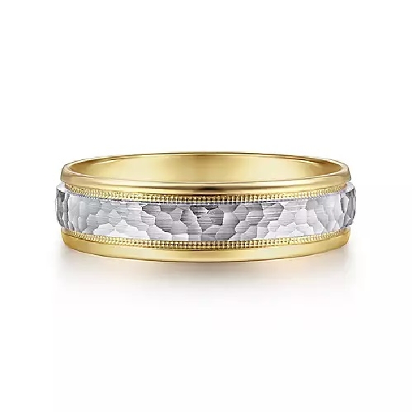 6mm Two-Tone Hammered Mens Band with Milgrain Edge by Gabriel & Co. Alloy Sample - Priced for 14K Y/W ** Includes Complimentary Titanium Band