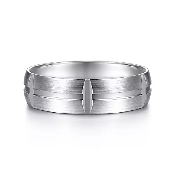 6mm Carved Station Mens Band in Satin Finish by Gabriel & Co. Alloy Sample - Price for 14KW **Includes Complimentary Titanium Band