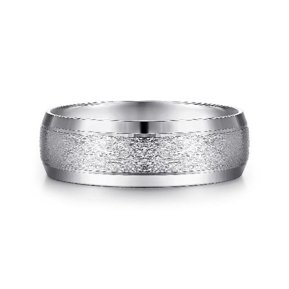 7mm Beveled Edge Band in Horizontal Brush Finish Mens Band by Gabriel & Co. Alloy Sample - Price for 14KW **Includes Complimentary Titanium Band