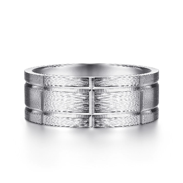 8mm Satin Finish with Checkered Pattern Mens Band by Gabriel & Co. Alloy Sample - Price for 14KW **Includes Complimentary Titanium Band