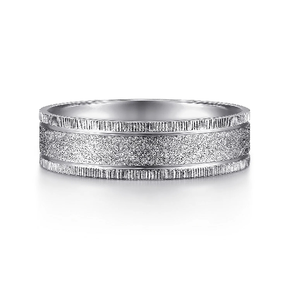 6mm Sandblast Finish with Diamond Cut Ridges Mens Band by Gabriel & Co. Alloy Sample - Price for 14KW **Includes Complimentary Titanium Band