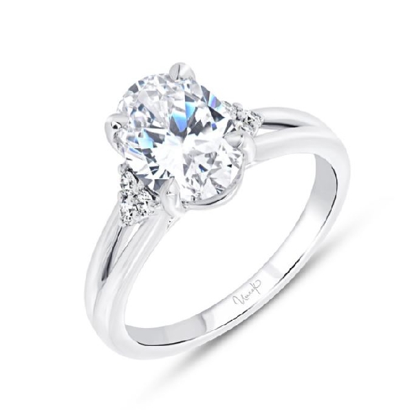 Oval Solitaire with Diamond Accented Shoulders Alloy Sample Ring Mount from the Timeless Collection by Uneek - R1206OV