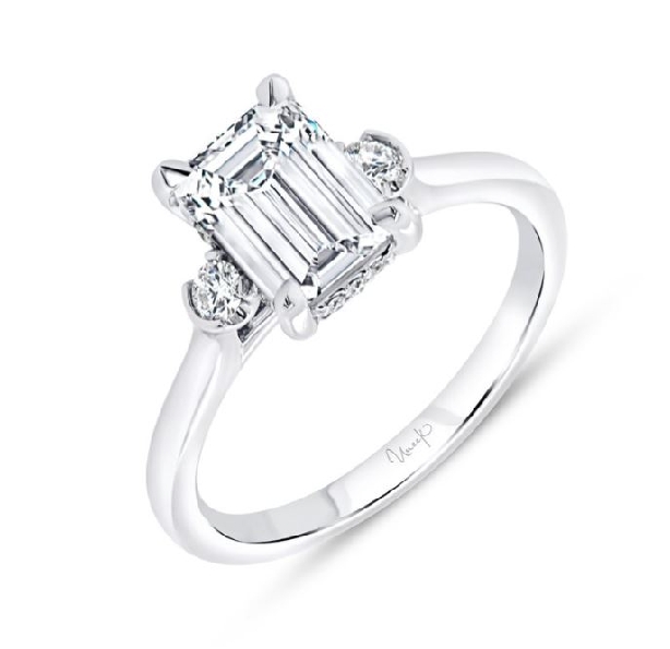 Emerald Cut Hidden Halo Three Stone Alloy Sample Ring Mount from the Timeless Collection by Uneek - R1197EC