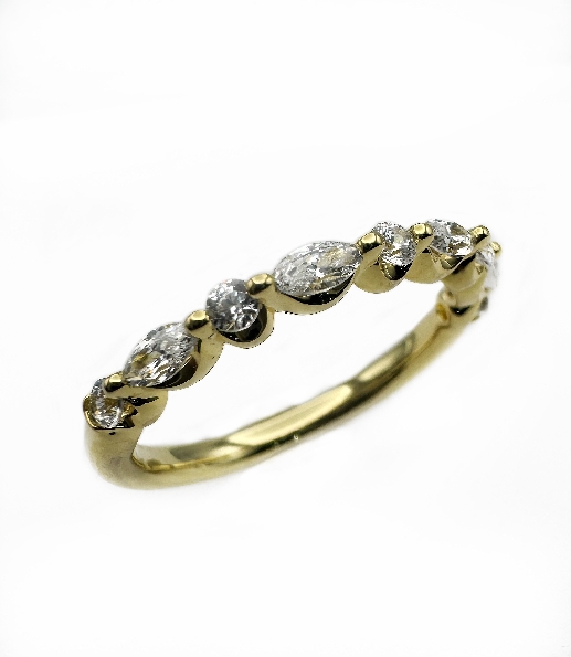 Alternating Round and Marquise Shape Stones Gold Tone Alloy Sample Band from the Timeless Collection by Uneek - R611