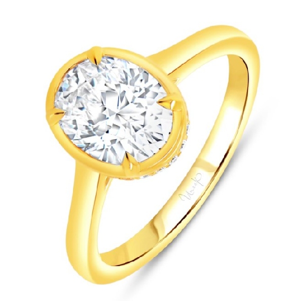 Oval Bezel Design with Profile accent Stones Gold Tone Alloy Sample Ring Mount from the Alexandria Collection by Uneek - R102OV-200